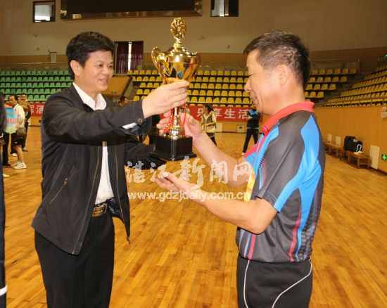 湛江市政协副主席麦马佑为冠军湛江市代表队颁奖。