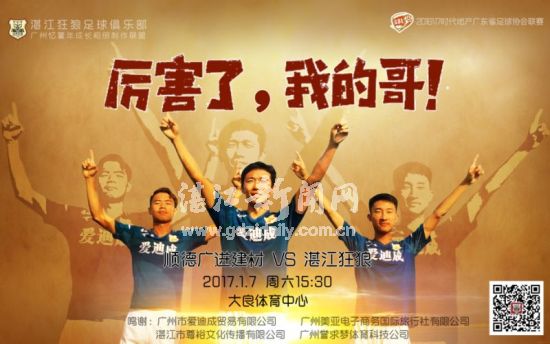 湛江新闻网讯:1月7日下午,2016-2017广东省足球协会联赛第九轮赛事在顺德大良体育中心足球场进行,湛江狂狼队客场不负重望,3:0战胜顺德广进建材城队,以全胜战绩积分24分继续稳座西区第一名。