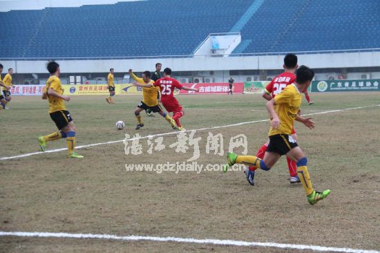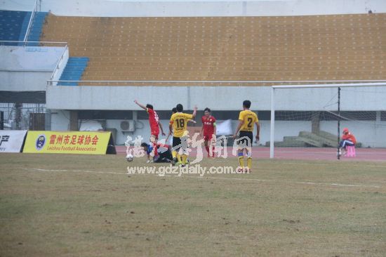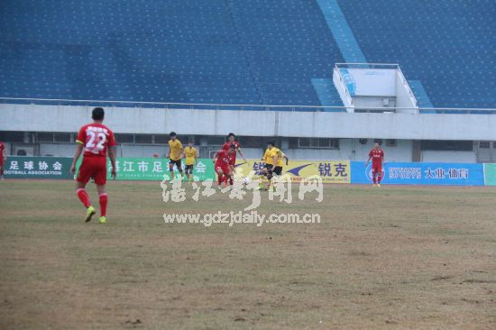 湛江新闻网讯:1月14日下午,湛江天气转冷,雾雨蒙蒙,迎来了湛江狂狼主场第三场战事,在市体育中心上演,虽战事波涛不惊,因天冷又下雨,球员无法发挥球技,经过90分钟艰难比拼,最终2:0小胜中山名人国际队,实现9连胜战绩。