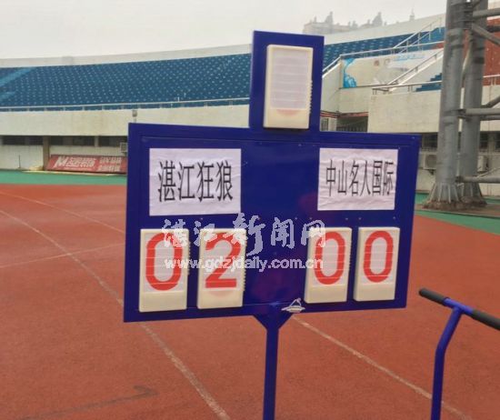 比赛一开始,天公不作美,整个比赛阴雨飘飘淅淅,阴冷天气考验球员体力和球技,开球7分钟,湛江狂狼36号饶家瑚利用边路突破成功攻入一球,接着22分钟,35号王子立再下一城,下半场双方攻势不减,但双方都交白卷,最终湛江狂狼队以2:0小胜中山名人国际队,没有让大家期望的进球大战。湛江狂狼队战罢,9战全胜积27分,领衔西区头名,这也是主场继2016年11月19日4:1清远恒大足球学校队,2016年12月10日2:0顺德广进建材城队又一大胜利。今年过年后2月18日,湛江狂狼队再以主场对阵云浮摩尔新云队。