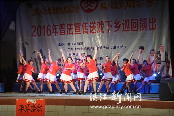 反家暴法出台后,市妇联作为代表和维护妇女权益的组织,为了做好宣传普法工作,让更多的群众了解反家暴法,懂得向家庭暴力说“不”!市妇联组织策划了一台“拒绝家庭暴力 共创文明社会”普法宣传送戏下乡巡回演出,于2016年3月11日在廉江安铺镇启动了第一场演出。通过现身说法小品、情景剧、歌舞及本土题材的民间群众文艺节目和有奖问答的形式,宣传法律法规,历时一年共演出了14场,据统计,14场活动发放《妇女维权指南》、《婚姻法知识要点》、《反家庭暴力法》等宣传资料、小册子28000份,活动惠及群众21000人。