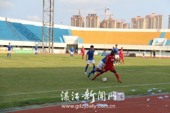 湛江新闻网讯:5月6日下午15:30时,2016-17时代地产广东省足球协会联赛季后赛半决赛首回合粤西德比大战湛江狂狼 VS茂名油都通宝在市体育中心体育场隆重上演。经过90分钟激烈比赛,湛江狂狼在天时、地利、人和的有利条件下,没有占到丝毫便宜,最终双方互交白卷,以平局告终,下一场转入茂名主场,湛江狂狼前景变数多多了。
