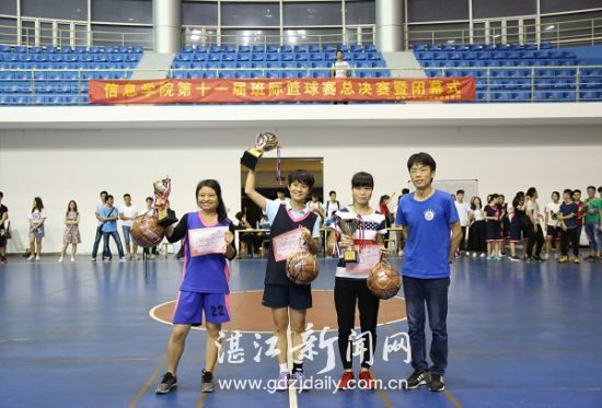 湛江新闻网讯:5月20日晚,信息工程学院班际篮球赛总决赛于雷阳区体育馆举行。15电本女篮以33:18的成绩击败16计本女篮斩获女子组冠军。15电气男篮以41:31的成绩击败16电气男篮赢得男子组冠军。信息学院党委吴万副书记、辅导员彭东丽、屈志奋、刘利丹等老师观看了比赛并为获奖班级和裁判组颁奖。