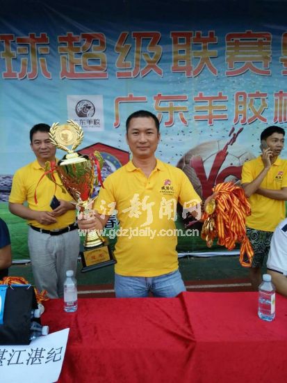 湛江新闻网讯:日前,“2016-17广东足球超级联赛(粤西赛区)总决赛在雷州人民运动场进行,雷州本土球队“湛纪队”与“雷州春秋队”相逢竞技,“湛纪队”在家门口力挫对手,捧走奖杯。
