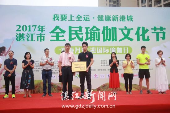 湛江新闻网讯:6月17日,为迎接即将到来的国际瑜伽日,提倡“我要上全运,健康新港城”主题,由湛江市体育局、湛江市总工会、共青团湛江市委员会、湛江市妇女联合会主办的2017年迎国际瑜伽日湛江市全民瑜伽文化节活动在体育中心举行。市体育局副局长陆宇、市总工会宣教部长陈少霞、共青团湛江市委员会副书记李延忠先生、市妇女联合会副主席符英以及商家代表参加开幕式并为活动的企业团体颁发牌匾。据悉,本次活动为积极响应国家体育总局关于推广“我要上全运”为主题的全民健身系列活动和赛事,助力创建“国家运动休闲城市”,迎接第十三届市运会,切实开展“全民全运、全民健身”的健康体育活动。举办“我要上全运,健康新港城”——2017年“福海月饼”迎国际瑜伽日湛江市全民瑜伽文化节活动,为我市广大瑜伽爱好者开展瑜伽活动搭建新的交流平台,展示港城群众崭新的精神风貌和树立健康新港城的城市形象。本届千人瑜伽活动云集各大瑜伽专业老师的精彩展演并亲自指导各参加者进行基础瑜珈练习,吸引来自广场舞协会,瑜伽筹委会,高校团队等男女老少瑜伽爱好者演绎精彩的舞蹈、美女瑜伽、亲子瑜伽、情侣瑜伽的表演。1000多人伴随着瑜伽老师的指导,瑜伽练习者认真的完成每一个动作,体验瑜伽带来的益处。千人瑜伽爱好者雨中齐练习的画面,仿佛一幅草原上美丽的画卷展开在体育中心,共同唱响全民健身的主旋律。