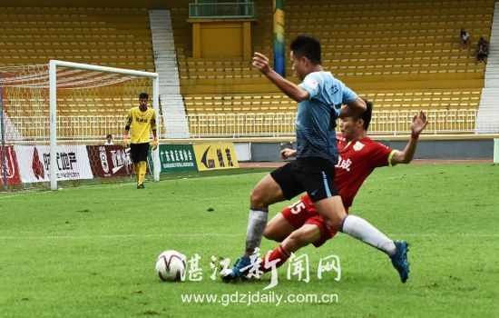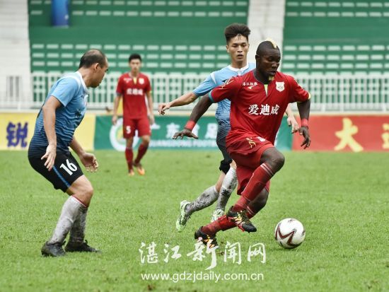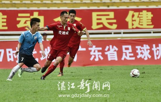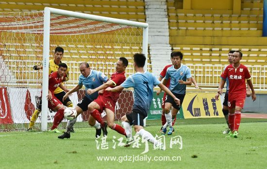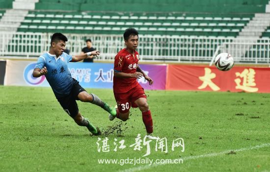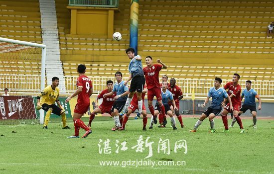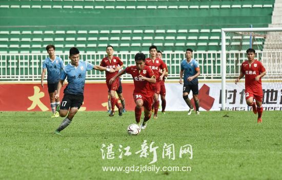 湛江新闻网讯:6月17日下午3点,2016-2017时代地产广东省足球协会联赛总决赛湛江狂狼队对阵肇庆恒泰队在广东省人民体育场拉开战幕,半场湛江狂狼队员先拔头筹,接着肇庆恒泰不甘落后,队员配合射门进球,半场就锁定比分1:1,在点球大战中,湛江狂狼队员技不如人,1:4败北,最终于2:5输了比赛获得亚军,肇庆恒泰队冠军。