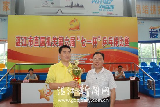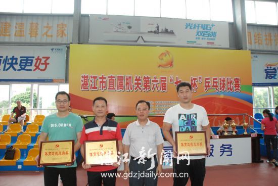 湛江新闻网讯:6月16日下午,由于湛江市直属机关工委主办、中国电信湛江分公司协办的湛江市直属机关第六届“七一杯”乒乓球赛在中国电信湛江分公司体育馆圆满收拍,湛江市直属机关工委周学强副书记等领导向获得团体赛、体育道德风尚获奖单位进行颁奖。