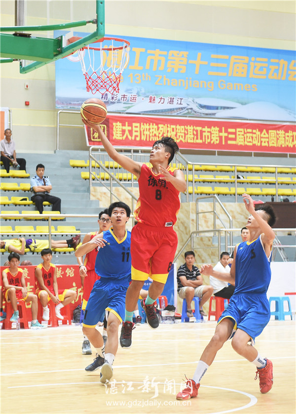 24日,市运会青少年男子组篮球比赛在廉江市体育馆展开最后一轮的角逐。