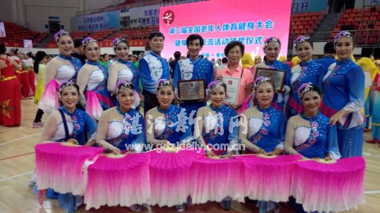 据悉,秧歌表演具有悠久的历史,是北方劳动人民长期创造积累的艺术财富。它起源于插秧耕田的劳动生活,在发展过程中不断吸收农歌、菱歌、民间武术、杂技以及戏曲的技艺与形式,发展到今天,成为人们喜闻乐见的民间歌舞。健身秧歌是一种对人体有益的活动,可以通过音乐和肢体的运动从而使人身心平衡,健身秧歌对人的身体具有调节功能。同时也为贯彻落实《“健康中国2030”规划纲要》、《全民健身条例》和《全民健身计划(2016-2020年)》,以及发挥体育在丰富老年人体育健身生活、构建和谐社会、推进健康中国建设中的积极作用。活动由国家体育总局、全国老龄办、中国老年人体协共同主办有来自全国的35个代表队共千余人参加。我市秧歌队代表广东省参加比赛,与全国35支队伍进行同场竞技。我市健身秧歌队自选套路以《湛放》主题展现了满城老人风采,以第七套秧歌作为规定套路的比赛,两项均获得优胜奖和体育道德风尚奖。为广东老体协人争了光,添了彩。