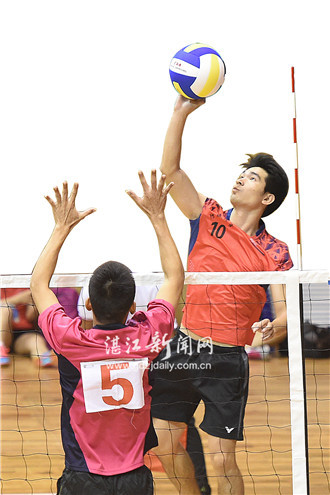 8日,第一届北部湾城市运动会气排球赛开赛,男子B组的比赛中,防城港队与崇左市队正在场上激烈比拼,最终防城港队以2:0获胜。 首日比赛的各小组排名第一的分别为:男子A组:北海;女子A组:北海;男子B组:防城港;女子B组:玉林。 据了解,本届运动会气排球赛共有7支参赛队伍,约130名运动员参加。