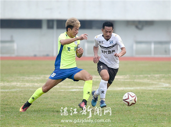 湛江队与北海队的球员正在球场上激烈角逐。记者 刘冀城 摄