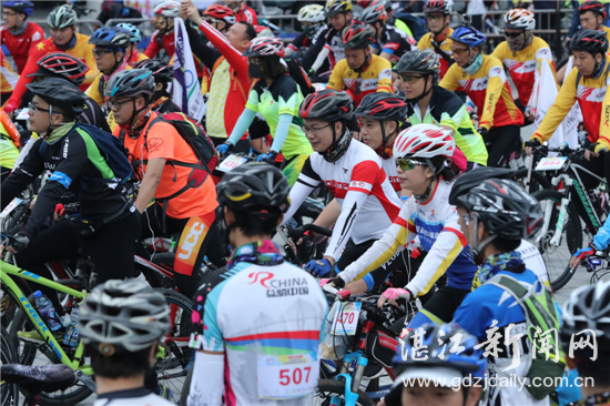 19日一大早,随着一声长鸣笛,2017北部湾城市(湛江)骑行暨第四届环雷州半岛200公里骑行活动开始,天气虽然寒冷,但活动仍吸引了近2000名自行车骑行爱好者参加。