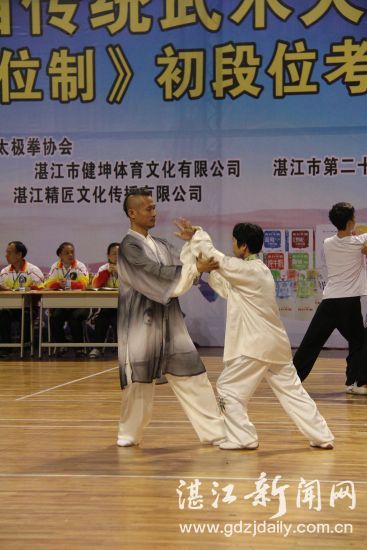 湛江新闻网讯:11月25日,由市体育局主办,市陈式太极拳协会承办的“湛江市第二届传统武术大赛暨《中国武术段位制》初段位考评”在湛江市体育中心体育馆举行,来自全市近500名武林好手过招。
