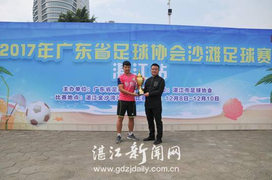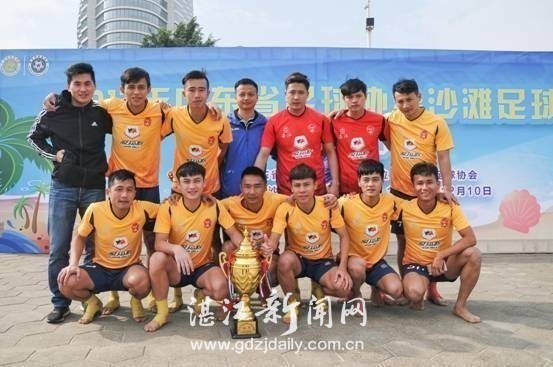 2017年12月10日,由广东省足球协会主办、湛江市足球协会承办的2017年广东省足球协会沙滩足球赛湛江站在我市金沙湾沙滩上演,最终万众炜凌俱乐部以6:5战胜荣兴江南世家队夺得本次比赛冠军,另外一边湛江恒辉队以5:3的比分取胜惠州队获得季军。至此,017年广东省足球协会沙滩足球赛也圆满结束。