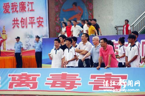 今年,将禁毒宣传与竞技足球比赛紧密相结合,成为雷州半岛深化全民禁毒工程的一项新举措和大亮点。5月17日下午,由湛江市体育局、廉江市体育局指导,湛江市禁毒委员会、湛江市足协主办,廉江市禁毒委员会、廉江市足协承办的2018年湛江市“禁毒杯”乙级足球比赛(廉江赛区)在廉江市第二中学足球场开幕,开幕式有社会各界人士、市民和学生3000多人踊跃参加。