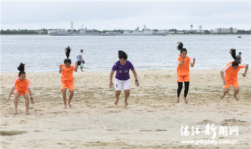 利用城市就坐落在大海边的天然优势,郑国栋因地制宜,每周都会带队员们到沙滩上进行一次体能训练,利用沙滩的阻力来提高队员们的力量。大量体能训练后,郑国栋还会带孩子们来到海边或者公园里进行一些放松性的调整训练,除了可以让她们快速恢复之外,他还希望通过这种训练方式,让孩子们慢慢敞开心扉,尽可能多地接触外界,敢于在陌生的环境中交流沟通,融入到社会的大家庭中。