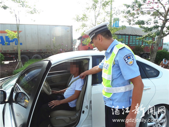 执勤交警在指导驾驶员按规定系好安全带。特约通讯员 雷鹏 摄