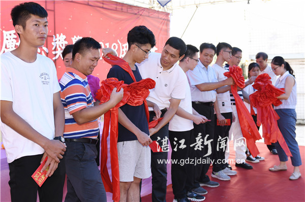 30日现场会上,南三岛霞瑶村的优秀学子们戴上大红花。 记者 郎树臣 摄