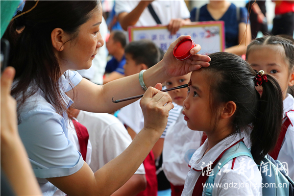 9月1日,在市八小跃进校区,数百名小学一年级新生参加了“开笔礼”仪式,老师为新生们进行了“朱砂启智”,在他们的额头正中点上红痣,意为“开启智慧”(如图)。当天,市八小在跃进、金城、草苏三个校区举办了简约、庄重的一年级新生“开笔礼”仪式。在家人们的陪伴下,新生们通过“端正衣装”“朱砂启智”“诵读《三字经》”等环节,充分感受了我国优秀传统礼仪文化等。