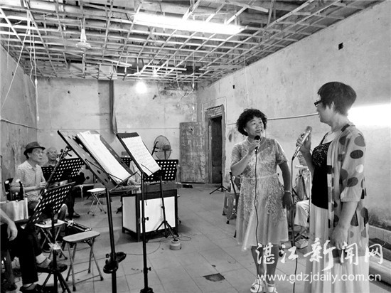 8月31日一大早,63岁的龙勉兰便与丈夫梁志中一道前往赤坎民权路,与曲艺团的团友排练粤曲。这是一支“私活局”,由一群喜爱粤曲的老人组建,每周两次,风雨无阻。
