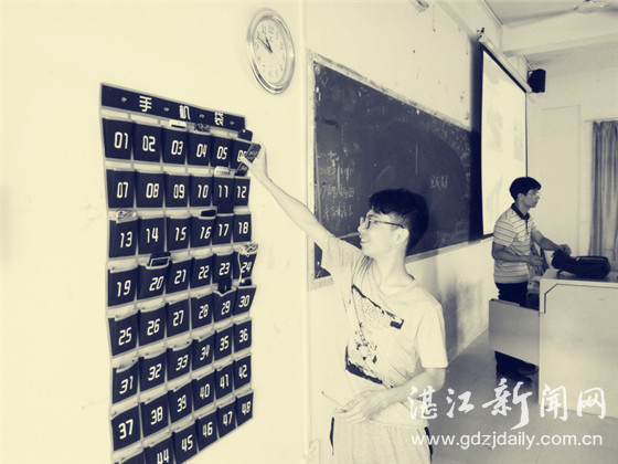 10月8日,记者从海大寸金学院了解到:为了深入贯彻落实新时代全国高等学校本科教育工作会议精神,进一步推进和加强学风建设,寸金学院工程技术系“搞搞新意思”,最近在该系专属课室挂起“手机袋”统一管理,倡议广大学生上课时拒绝玩手机,建设文明课堂,助力湛江创建全国文明城市。