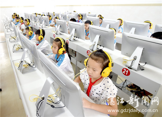 廉江第九小学学生在电脑室学习。记者刘冀城 摄