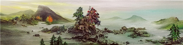 陈日英的作品风格源于古代先贤的思想精华,他对董源、王蒙、石涛、赵之谦、任伯年、吴昌硕、徐悲鸿、张大千、齐白石绘画思想的理解非常深刻,法古创新,创作出独具一格的“油意画”。