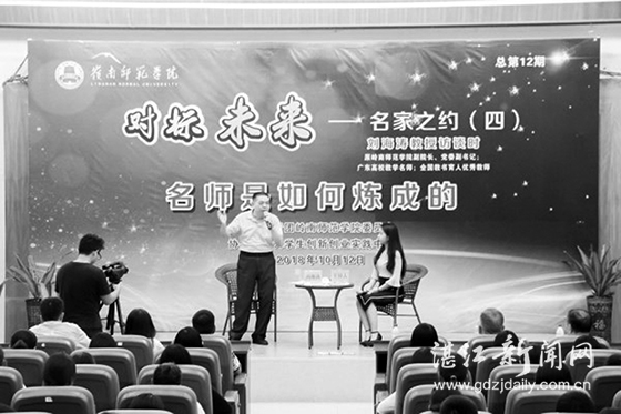 10月12日晚,刘海涛教授在岭师图书馆学术报告厅做客“对标未来——名家之约”访谈活动现场,分享了主题为“从生存、享受到发展:名师是如何炼成的”的演讲,全场座无虚席。