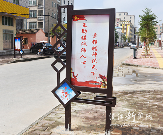 记者在东山街道、民安街道多条道路看到,笔直整洁的道路两旁,新设的立体公益广告宣传标牌美轮美奂、古色古香,包含着浓郁的中华文化视觉元素。“这样的宣传栏好!画面丰富、色彩鲜明,既能给城市环境增色添彩,又能起到宣传教育作用。”东海岛居民对此频频点赞。