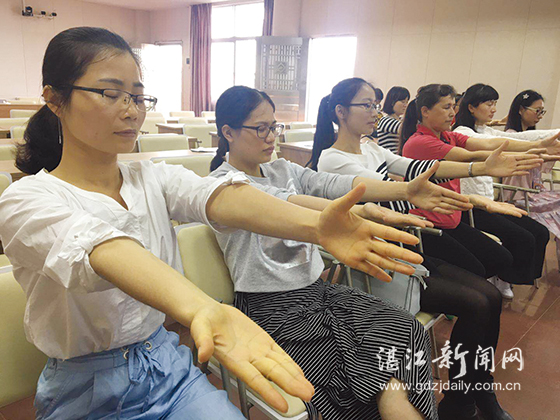 岭南师范学院附属中学心理骨干成员正在进行催眠培训。