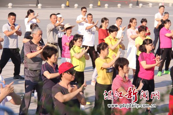 湛江新闻网讯:11月2日下午,由市体育局主办、市陈式太极拳协会承办的“健身气功进机关”2018年湛江市健身气功八段锦培训班在湛江市体育中心广场开班,近300名来自全市各局机关办公室工作的人员参加第一期开班。由我市健身气功造诣深厚的李诚老师率三名助教进行培训课。
