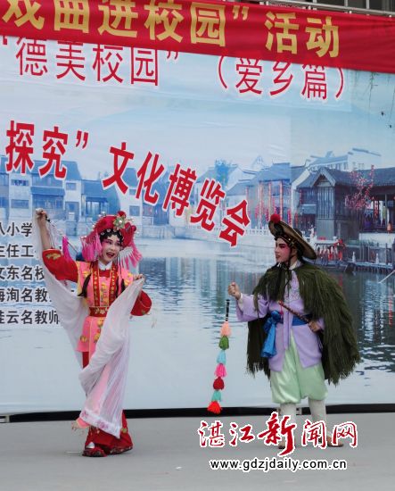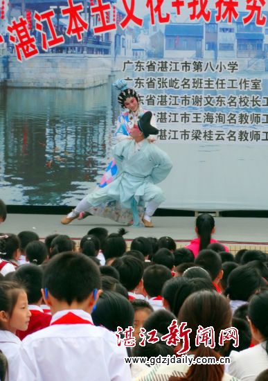 湛江新闻网讯:为贯彻落实国家关于支持传统文化全面复兴的文件精神,充分发挥戏曲艺术在传承文化、涵养道德方面的独特作用,不断提升学生的核心素养,11月5日,由湛江市文化广电新闻出版局、湛江市教育局主办的“戏曲进校园”活动走进了湛江市第八小学。