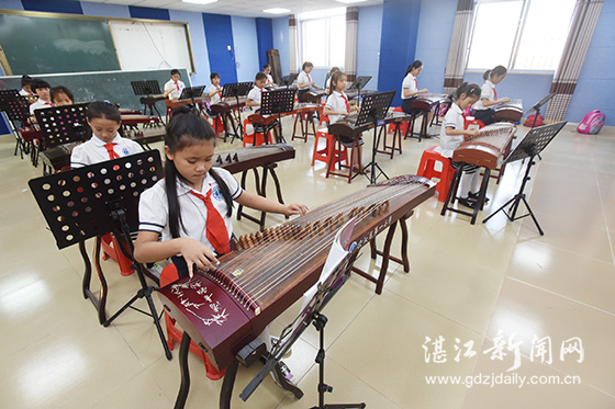 海蟹古筝社团的小朋友在专心练习。