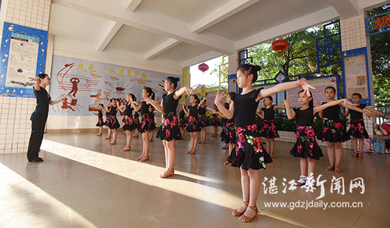 海韵少儿拉丁舞社团的小朋友在练舞。