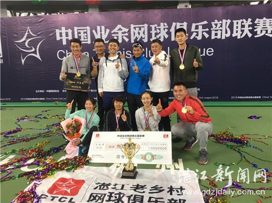 勇夺冠军殊荣的湛江老乡村网球俱乐部队的成员们合影留念。