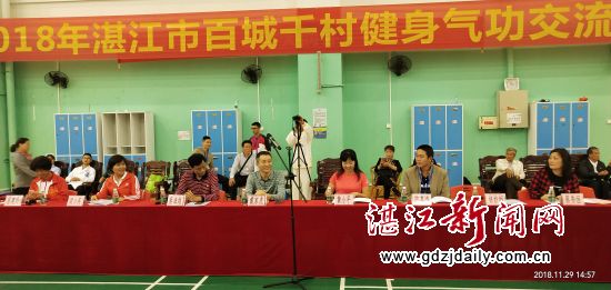 湛江新闻网讯:11月29 日下午3:00,2018 年湛江市“全民反邪教·同心奔小康”暨“百城千村健身气功交流展示”活动在霞山区国家体育总局湛江潜水运动学校俱乐部三楼体育馆进行,来自全市12支队伍250多人参加了展示。湛江市体育局戴家虎副局长、霞山区体育局蔡海越局长等领导参加了活动,并为获得代表队颁奖。