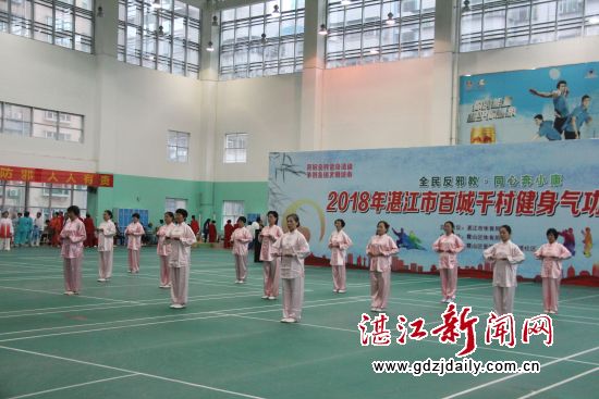 据悉,为贯彻落实《全民健身计划》,宣传普及反邪教法律政策,营造全社会反邪教氛围,进一步推动我市健身气功活动的普及和发展,提高健身气功运动技术水平。由湛江市体育局主办,霞山区体育局承办,霞山区爱国街道办东堤社区协办的2018 年湛江市“全民反邪教·同心奔小康”暨“百城千村健身气功交流展示”活动,吸引了来自赤坎区、霞山区、遂溪县、廉江市、徐闻县、吴川市等县市区选派出12支队伍250多人参加了比赛,展示了健身气功的易筋经、五禽戏、六字诀、八段锦、大舞、导引养生功等六个项目。