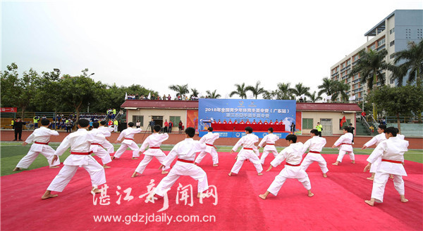 12月8日上午,湛江市少林学校杜鹃花开,彩旗招展,2018年全国青少年体育冬夏令营(广东站)及湛江市空手道冬夏令营在湛江市少林学校隆重开营。市体育局、市空手道协会等领导和来自全市各个学校的800多名少年儿童参加了开营仪式(见图)。仪式简单而隆重,少林学校空手道队带来的精彩表演,博得全场观众热烈的掌声。