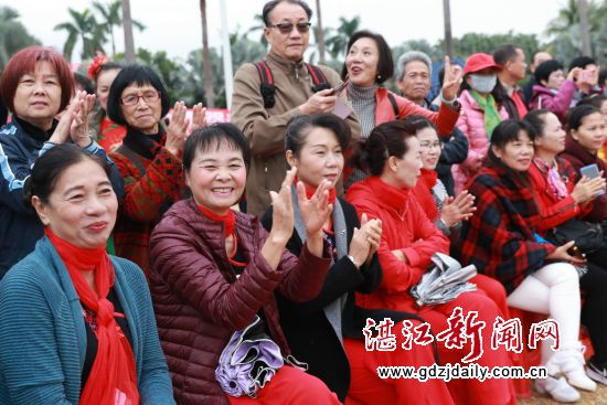 来自我市的海滨舞蹈队、百儒村开心舞队等30支队伍轮番上场,表演了《欢聚一堂》、《今生相爱》、《幸福拍拍手》、《共圆中国梦》、《最美中国》、《中国梦》等曲目,充分展现了改革开放40年来,久经磨难中华民族和湛江人民,迎来了从站起来、富起来,到强起来的伟大飞跃,中国特色社会主义迎来新时代,市民文体生活越开越丰富,作为融自娱性与表演性为一体的广场舞也遍及港城,得到更多中老年阶段喜爱,系列活动还将在湛江开发区东海岛、赤坎区举行,营造了良好的全民健身氛围,把湛江广场舞打造成展示湛江全民健身的窗口。