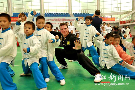 太极拳表演活动现场,外国友人也前来参加
