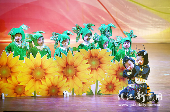1月13日,湛江市第一幼儿园举办文明童话剧汇演活动。小朋友穿上逗趣的戏服,演起了童话剧《迷路的小蚂蚁》,天真有趣的动作、表情,引得围观的家长们开怀大笑,送上阵阵掌声。