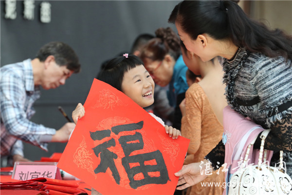 此次活动分为书法家为现场群众送“福”字和书法家挥毫赠春联环节。书法家们挥毫泼墨,把一个个火红的“福”字和象征平安和谐、吉祥如意的春联免费送现场群众手中。随后,赤坎区又组织书法家们和志愿者们到赤坎区各个街道开展“迎新春 写春联 送祝福”送春联下乡活动,通过送春联、禁毒宣传、流动书香图书车进农村等形式,活跃群众文化生活。
