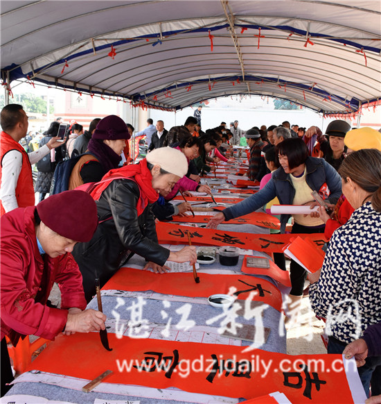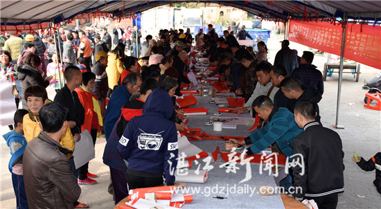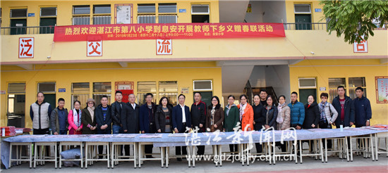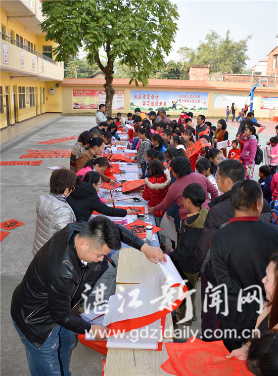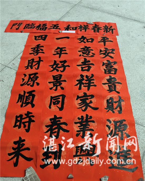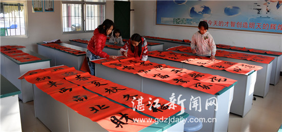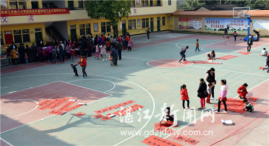 据悉,湛江市第八小学连续第二年开展送春联下乡活动,每次活动,通过学校的教师为群众写春联、送春联,把满满的关怀、浓浓的年味、新春的祝福送到每一户平常百姓家中,既丰富了农村文化,营造文化气息,又向社会展示了学校书法特色教育成果。