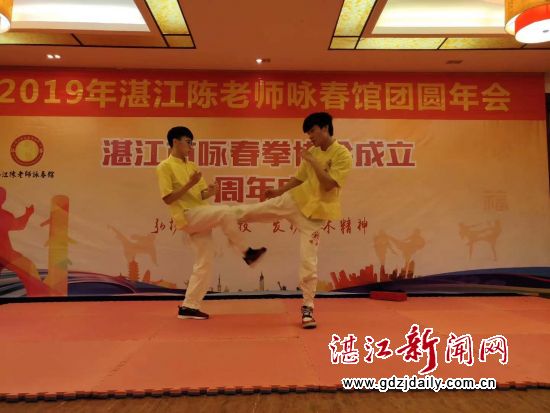 湛江新闻网讯:1月27日,湛江市咏春拳协会和陈老师咏春馆联合举行成立一周年庆典在霞山举行,120多名会员参加活动,并表演了咏春拳技法。