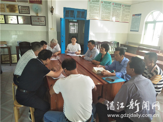 黄矢尖(右四)生前参加白茅村委会会议,了解帮扶对象情况。(资料图)