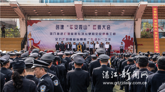 宣誓会要求,举全区之力,进一步深入推进扫黑除恶专项斗争和全民禁毒工程,全力抓好缉枪治爆和“双提升”工作,希望社会各界和广大人民群众积极支持参与创建“平安霞山”,共同维护霞山稳定、推进霞山各项事业上新台阶。