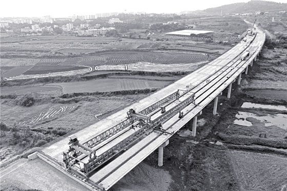 其中,群井大桥位于麻章区湖光镇群井村境内,全长375米,桥宽左、右幅均为11.75米,共3联,上部结构为120榀25米预应力砼小箱梁,桥面连续,下部结构桥墩采用柱式墩。0#、15#桥台采用肋板台,墩台基础均采用桩基础。一工区抓住今年雨季来临之前的黄金施工时期,抢抓箱梁架设的节点工期,为实现通车目标不断向前迈进。