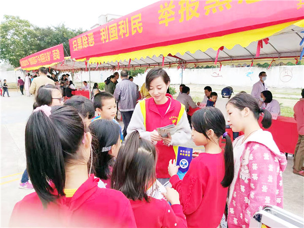 志愿者通过现场讲解和派发宣传资料,向当地群众和学生宣传“扫黑除恶”相关内容,提高群众反对黑恶势力的意识。据统计,当天参与扫黑除恶、禁毒、义诊等活动的群众约有500人次,现场送出宣传资料1300多份。