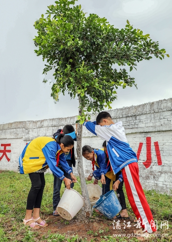 春回大地,万物复苏。3月13日下午,以植树节为契机,廉江市营仔镇仰塘小学师生开展了“植树护树,美丽校园”为主题的植树活动。全体学生在老师们的带领下,有的拿锄头挖树坑、有的打水浇水、有的扶正树木,校园里四处是孩子们穿梭忙碌的身影(如图,记者 张锋锋 摄)。