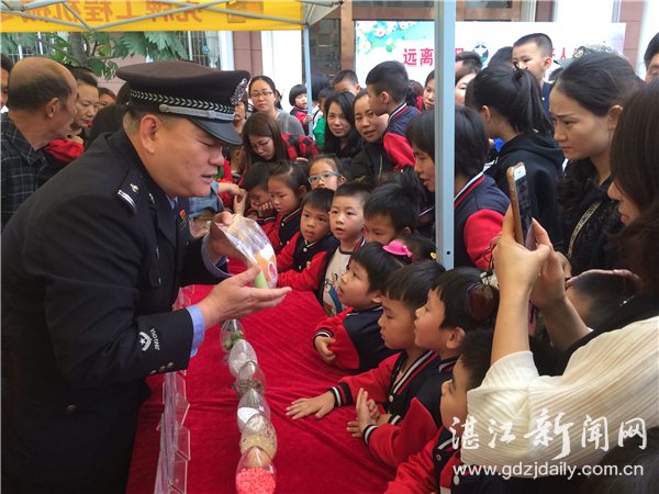 3月15日,一场以“你我远离毒品 亲近美好人生”为主题的宣教活动走进赤坎区多家幼儿园。当天下午,来自赤坎区禁毒办、北桥街道办、心港社工服务中心等单位派出的禁毒志愿者来到这些幼儿园,向孩子、家长、老师等讲解有关禁毒等多方面的知识(如图)。